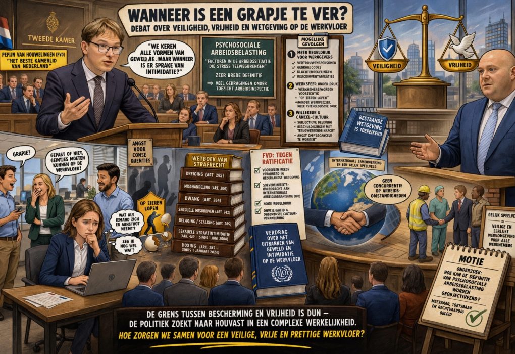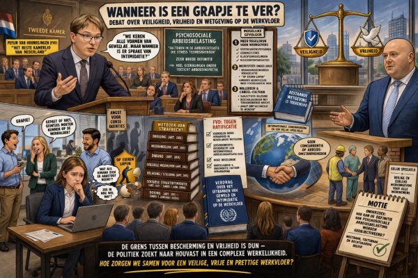 In de Tweede Kamer ontvouwde zich een scherp en principieel debat over een ogenschijnlijk eenvoudige vraag: wanneer is een grapje nog een grapje, en wanneer wordt het intimiderend? Wat begint als een bespreking van een internationaal verdrag over het uitbannen van geweld en intimidatie op de werkvloer, groeit al snel uit tot een bredere discussie…