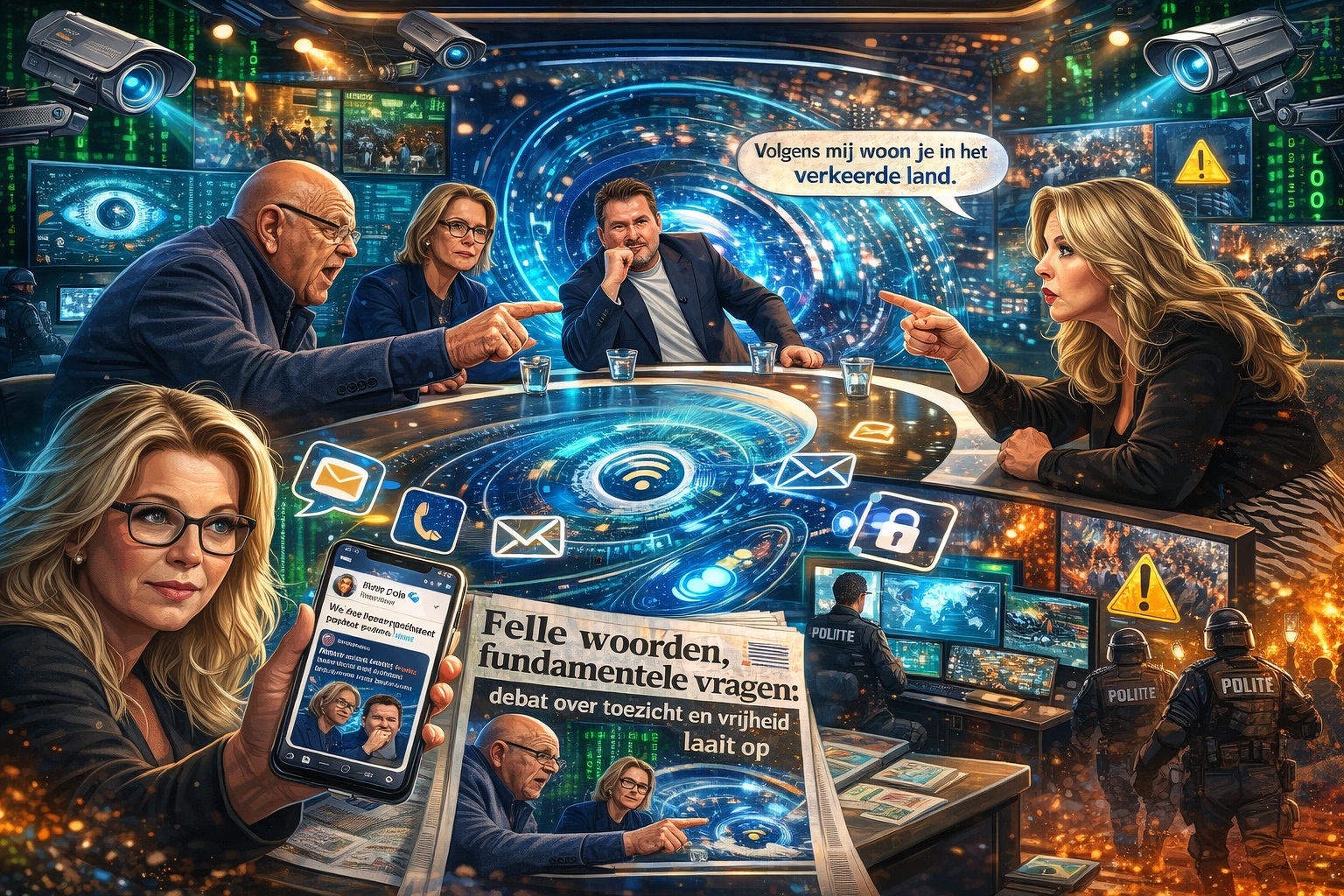 Een ogenschijnlijk kort fragment uit een televisie-uitzending heeft een veel bredere discussie blootgeleg over vertrouwen, macht en de grenzen van overheidsingrijpen. Wat begon als een felle woordenwisseling in een studio, groeide uit tot een debat dat raakt aan de kern van de democratische rechtsstaat: hoeveel controle is gerechtvaardigd in naam van veiligheid, en wanneer wordt…